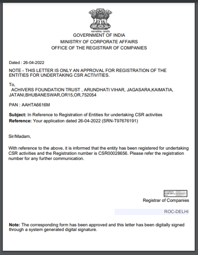 Achievers Foundation, Arundhati Viar, Near Utkal University of Culture, Jagasara, Bhubaneswar, Odisha, India Pin-752054,